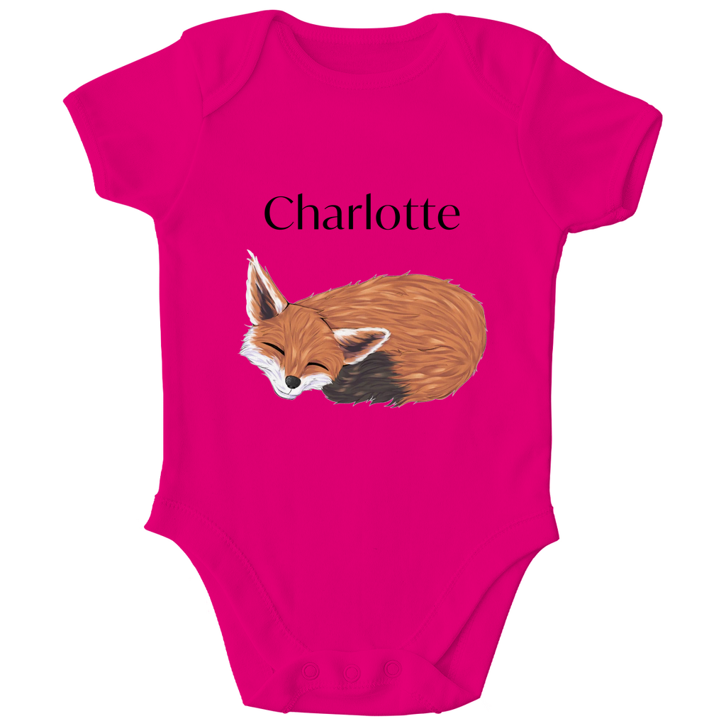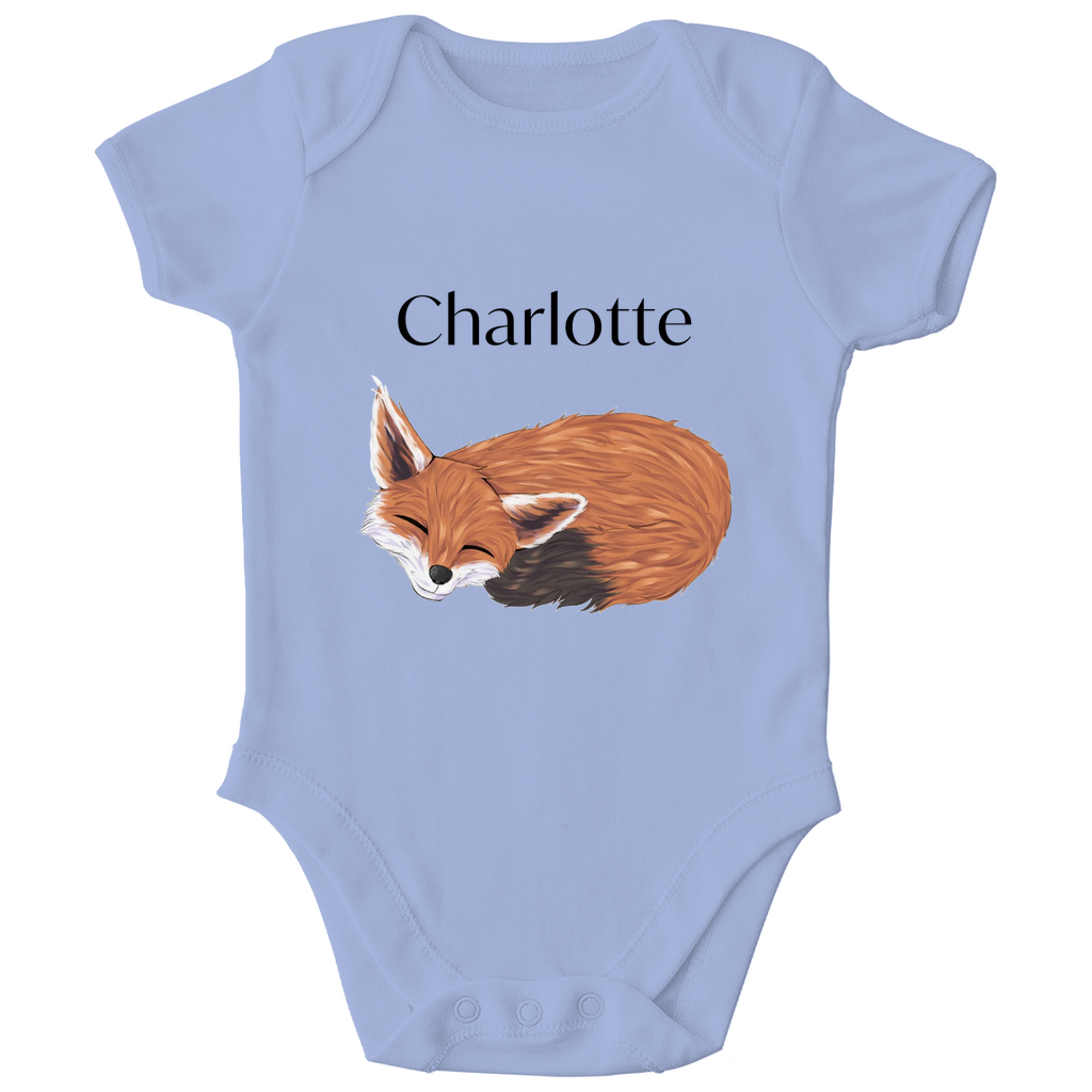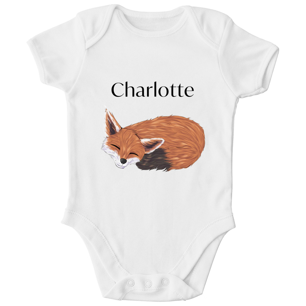 Der schlafende Fuchs bringt Ruhe und Geborgenheit auf diesen kuschelweichen Babybody.
