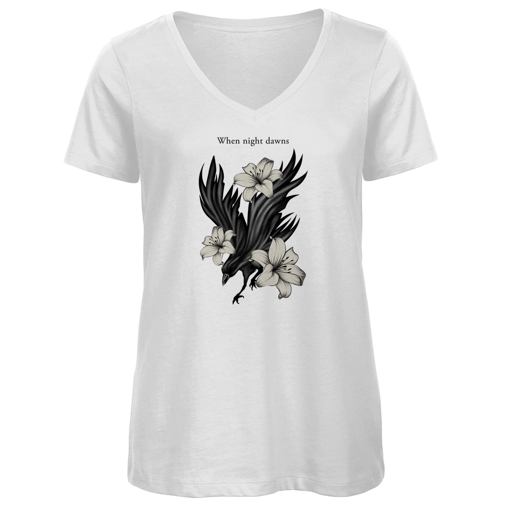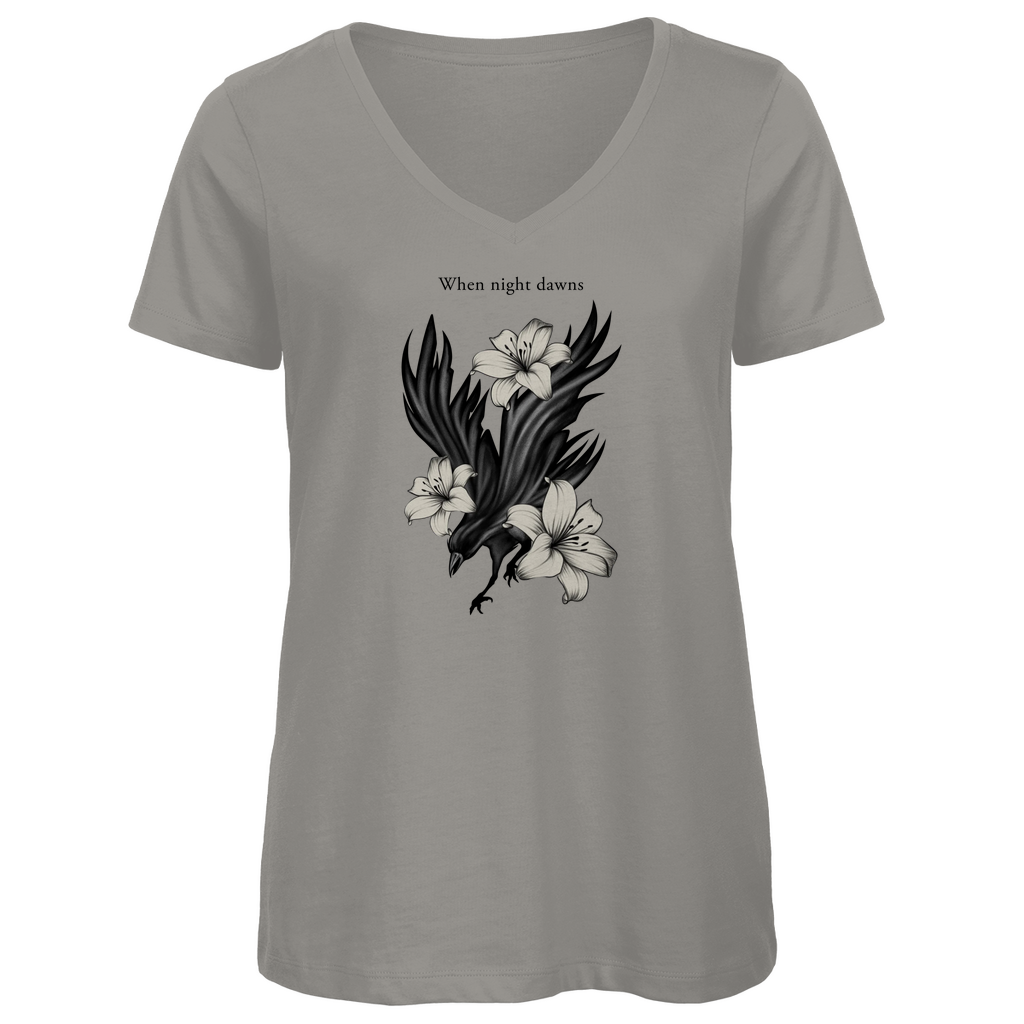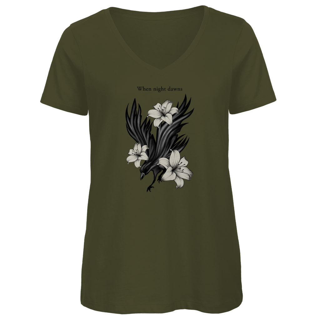 Damen Premium Bio V-Neck T-Shirt – Rabe und Lilien
