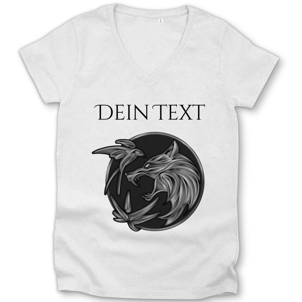 Damen Premium Bio V-Neck T-Shirt - Wolfsemblem