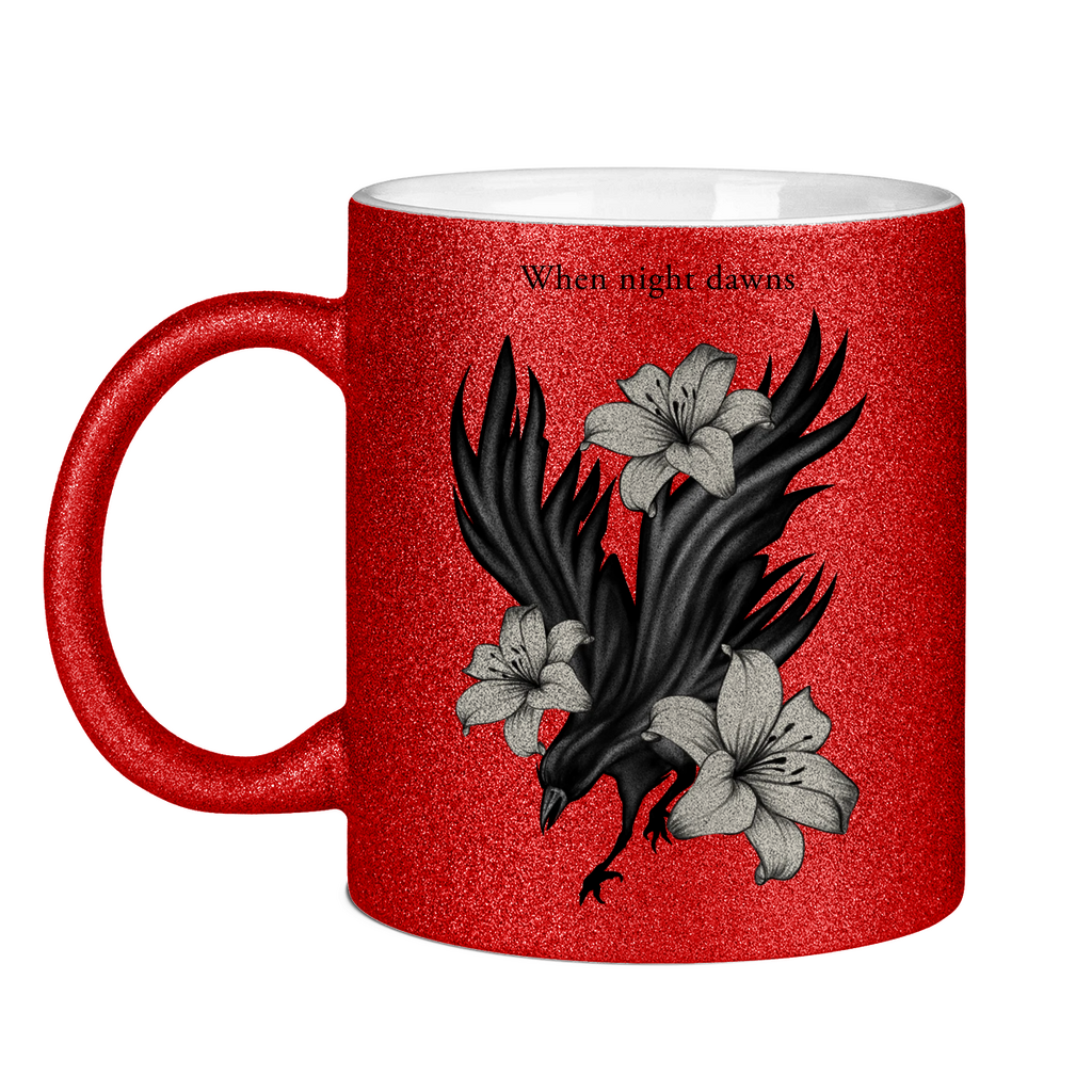 Das edle Rabe & Lilien Motiv vereint Stärke, Eleganz und Tiefe – der Rabe steht für Weisheit und Wandlung, die Lilien für Reinheit und Anmut.