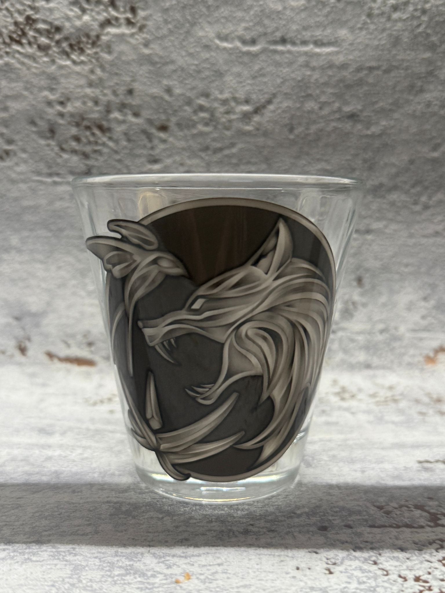 • Whiskeyglas mit markantem Motiv „Wolfsemblem“