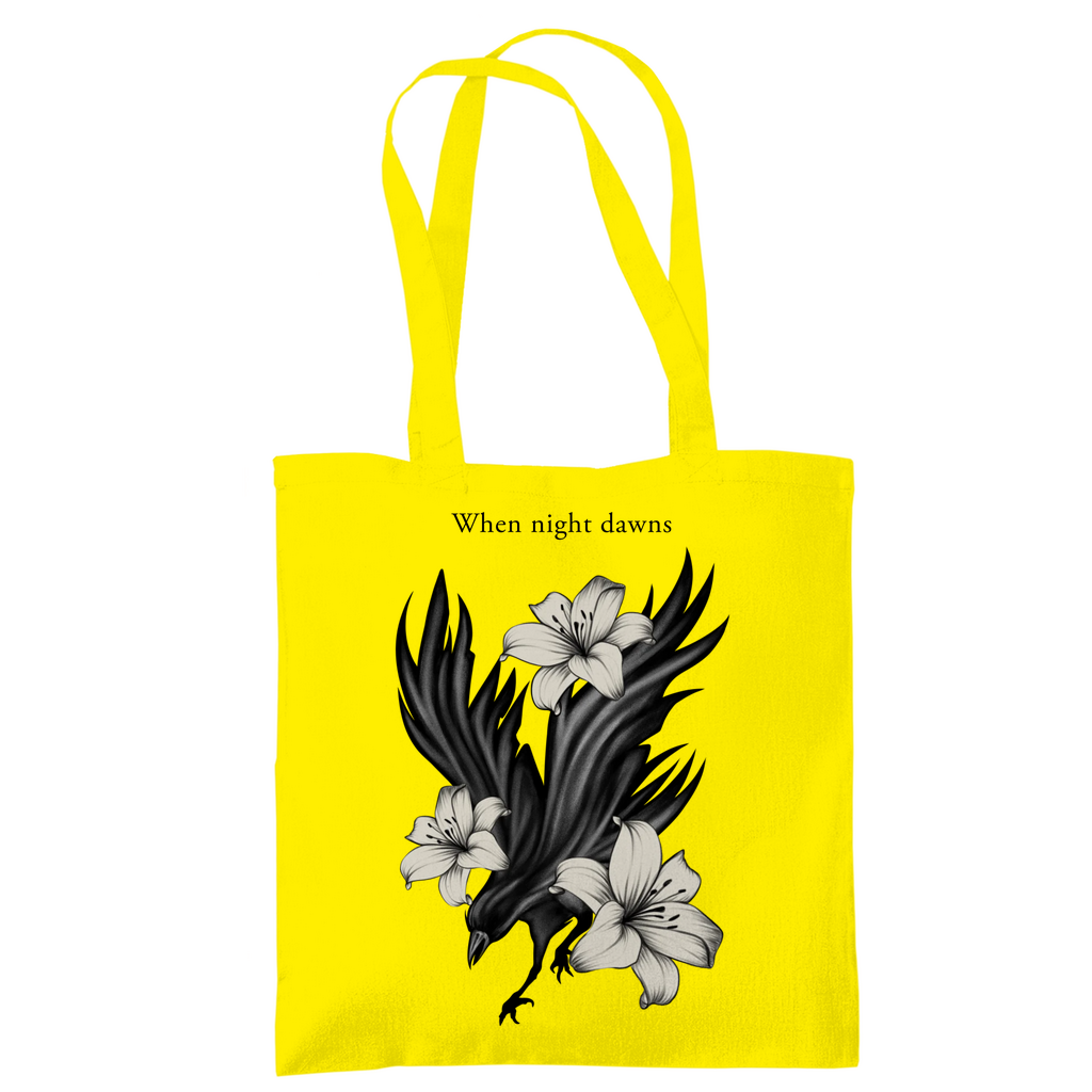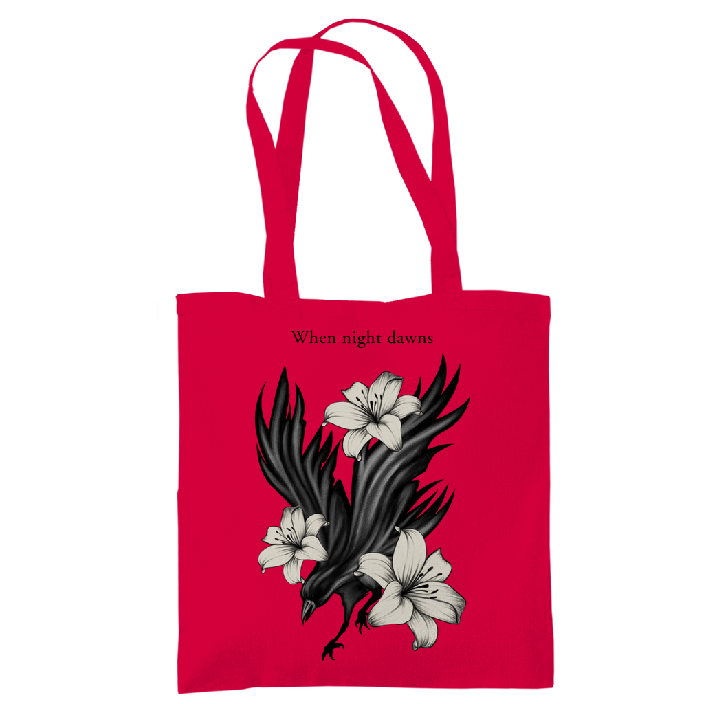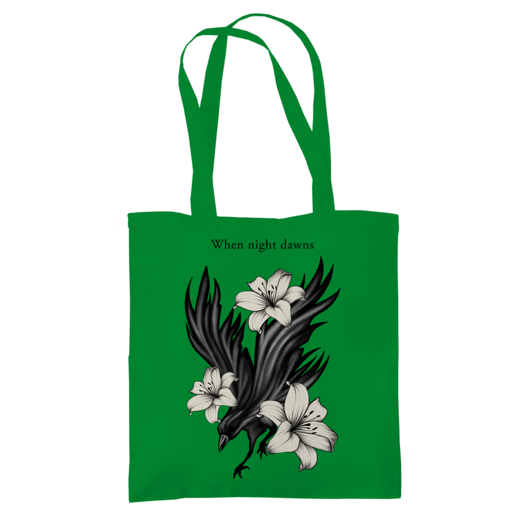 Das ausdrucksstarke Motiv zeigt einen Raben, umgeben von Lilien – Sinnbild für Mystik, Stärke und Eleganz.
